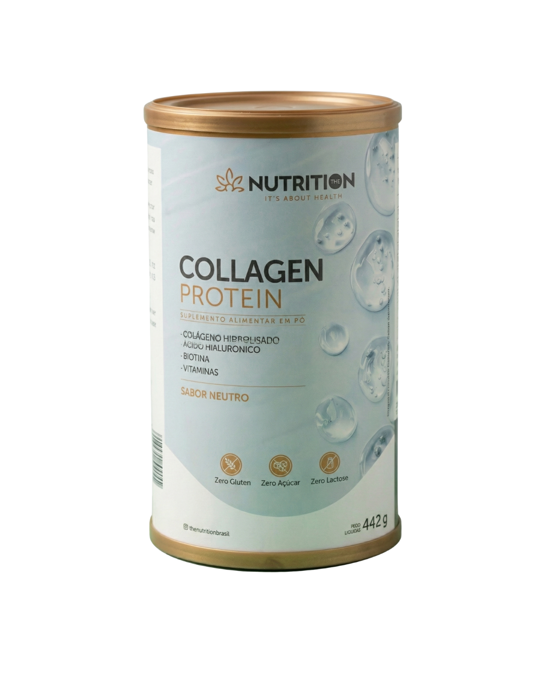 O Collagen Protein neutro da The Nutrition é um suplemento em pó que combina colágeno hidrolisado, ácido hialurônico, biotina e 21g de proteína por porção. Livre de glúten, açúcar e lactose, é versátil para adicionar em qualquer receita.
